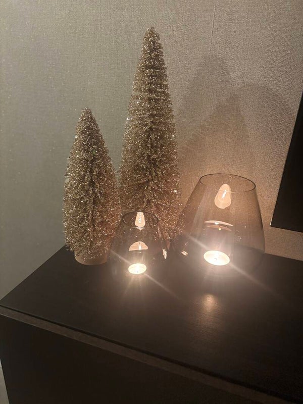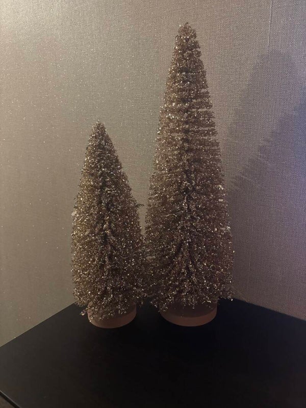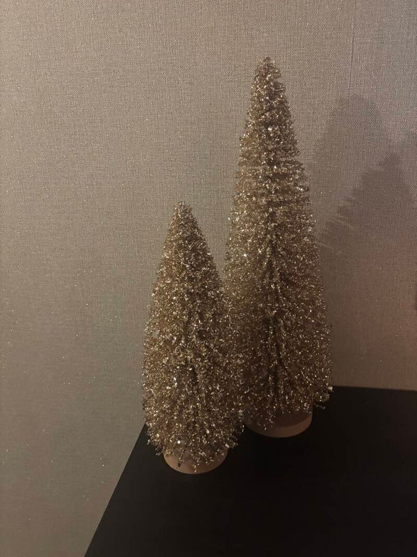 De set bestaat uit 1x decoratieve kerstboom gold Geonna maat S en 1x uit decoratieve kerstboom gold Geonna maat M.